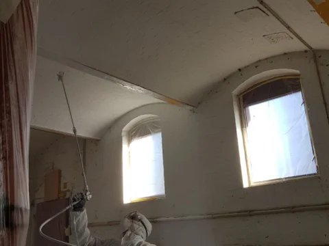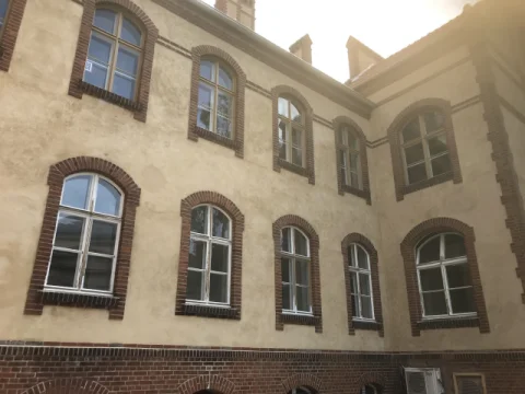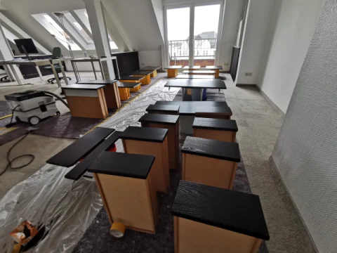 Malerarbeiten und Umgestaltung im Haus 4 des Campus Nord. Galerieräume mit Airlesstechnik. Denkmalgerechte Aufarbeitung der gesamten Holzfenster.