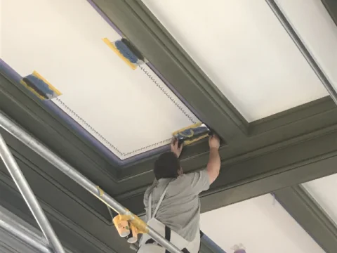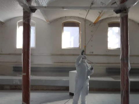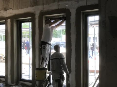 Ausführung von Maler- und Lackierarbeiten für die Fachgemeinschaft Bau Berlin Brandenburg. Circa 11.000 m² Beschichten von Decken- und Wandflächen sowie 2.500 m² Malervlies an Decken- und Wänden kleben.